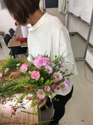 あのナチュラルで素敵なアレンジメントや花束にはしっかりとした技術と理論が隠れているという事です。