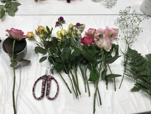 ・課題1:花束の制作作業を行う。試験時間=45分