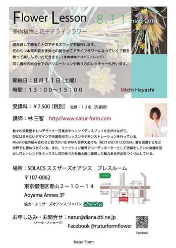 また、平成30年度フラワー装飾技能士検定資格取得講習会では2級(3級含む)を林三智先生に、1級を私(浅場)が担当いたします。