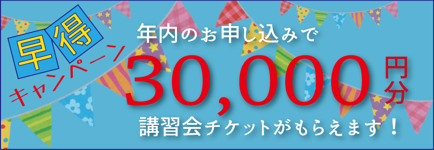 ※通常1回あたり10,000円の講習チケットが3枚(3万円分)もらえます!