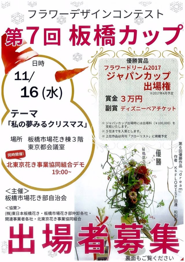 参加方法はチラシまたは東京都フラワー装飾技能士会ホームページよりお申込できます。